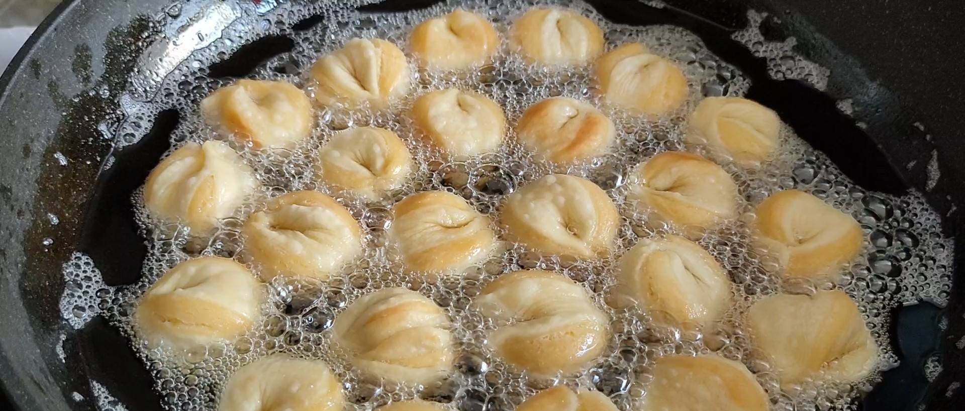 锅中放油,油温三成热下锅炸。下锅当前,用铲子沿着锅底划动一下,防止粘锅底。炸至全体飘起当前,勤翻动,让每面都受热平均,全程用小火慢炸,炸熟炸透后捞出控油。